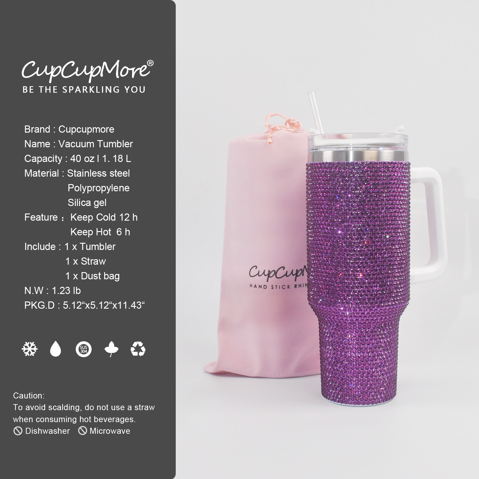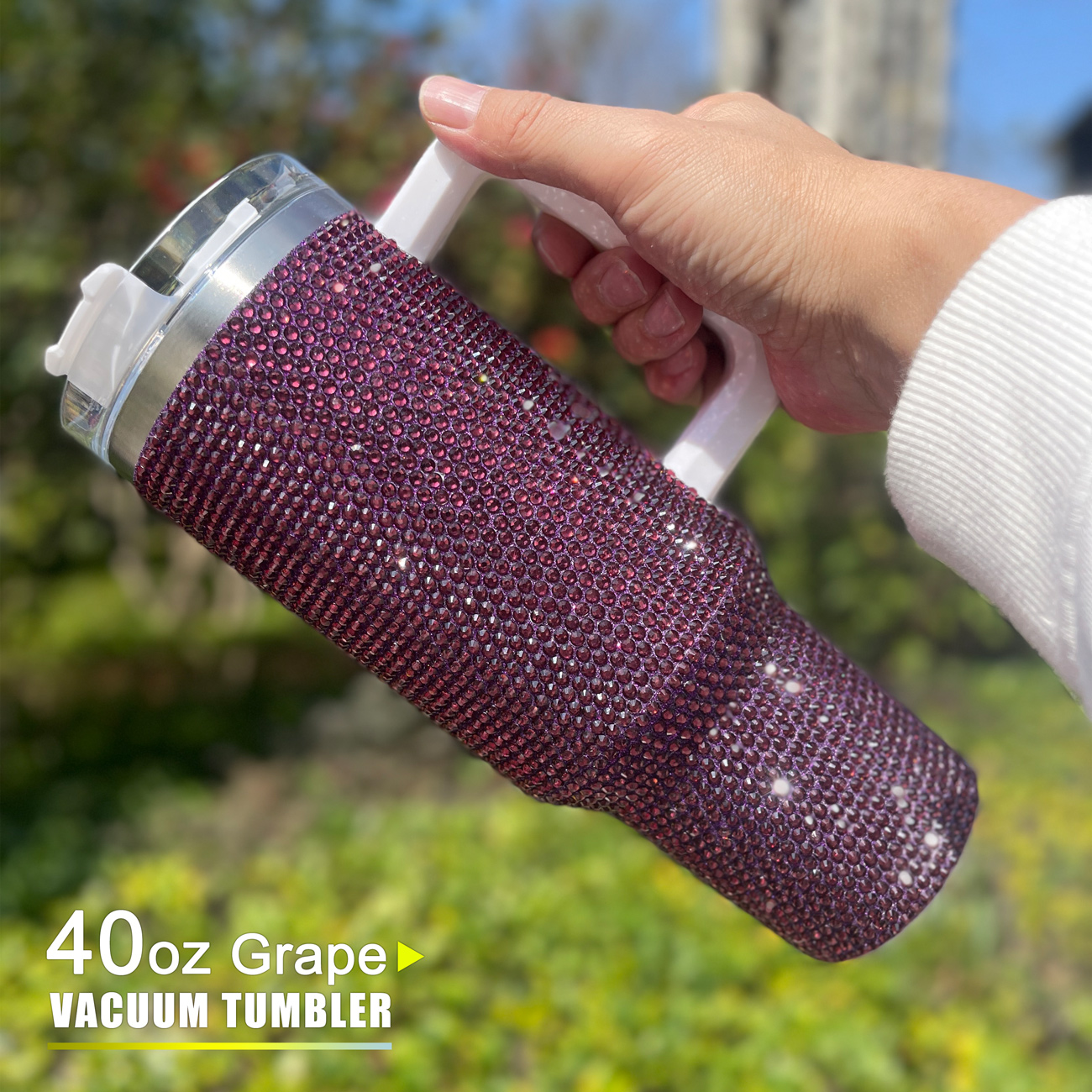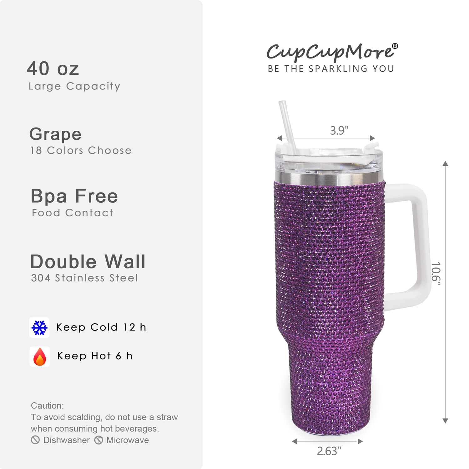 Cupcupmore 40 oz Grape Bling Rhinestone Stainless Steel Sippy Tumbler Glitter Vacuum Insulated Thermal Water Bottle with Straw & Lid &Handle,Sparkle Car Cup Holder,Keeps Cold 12 Hours Drinks,Coffee