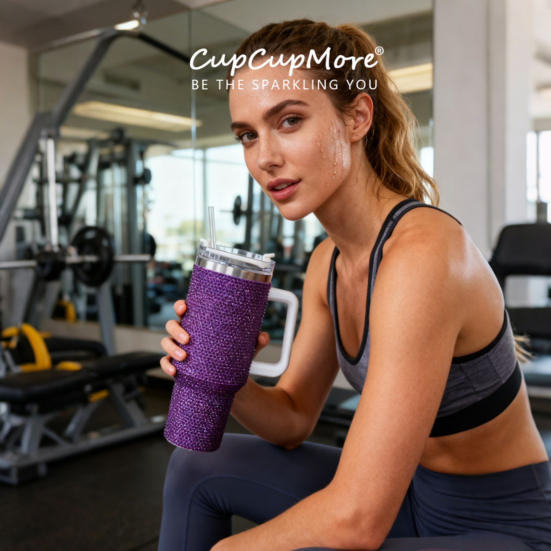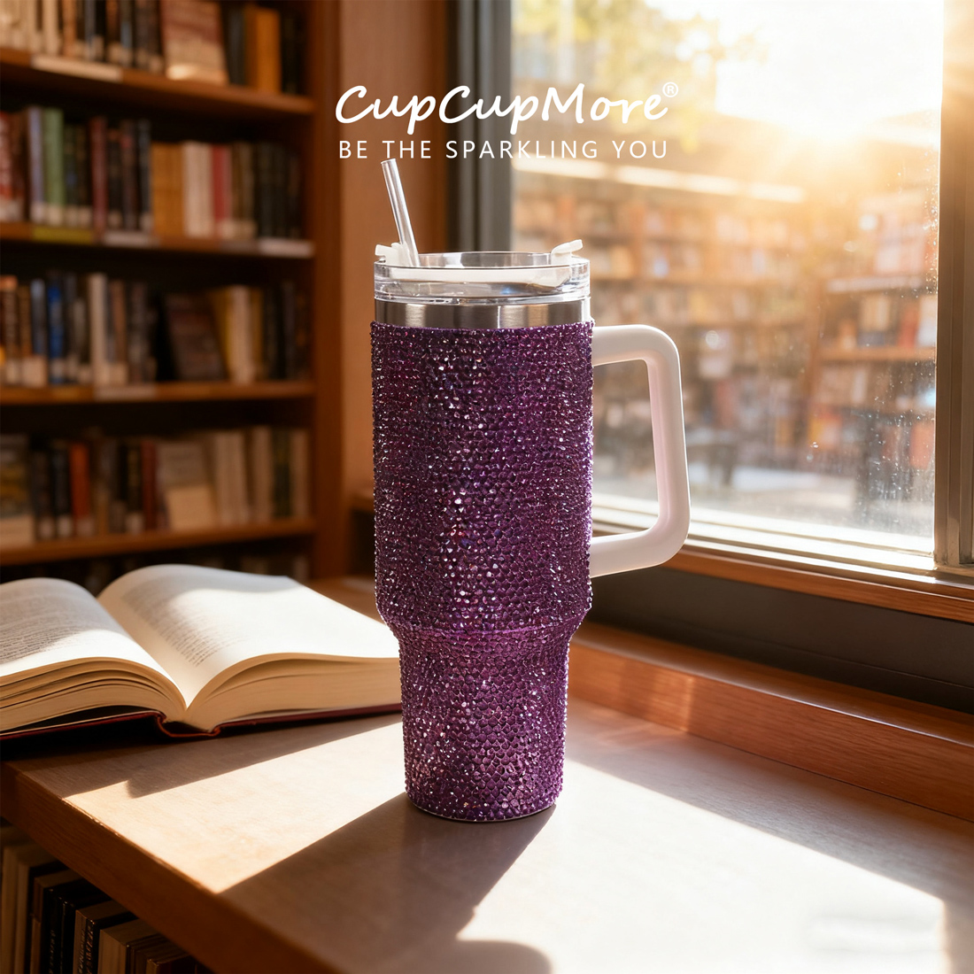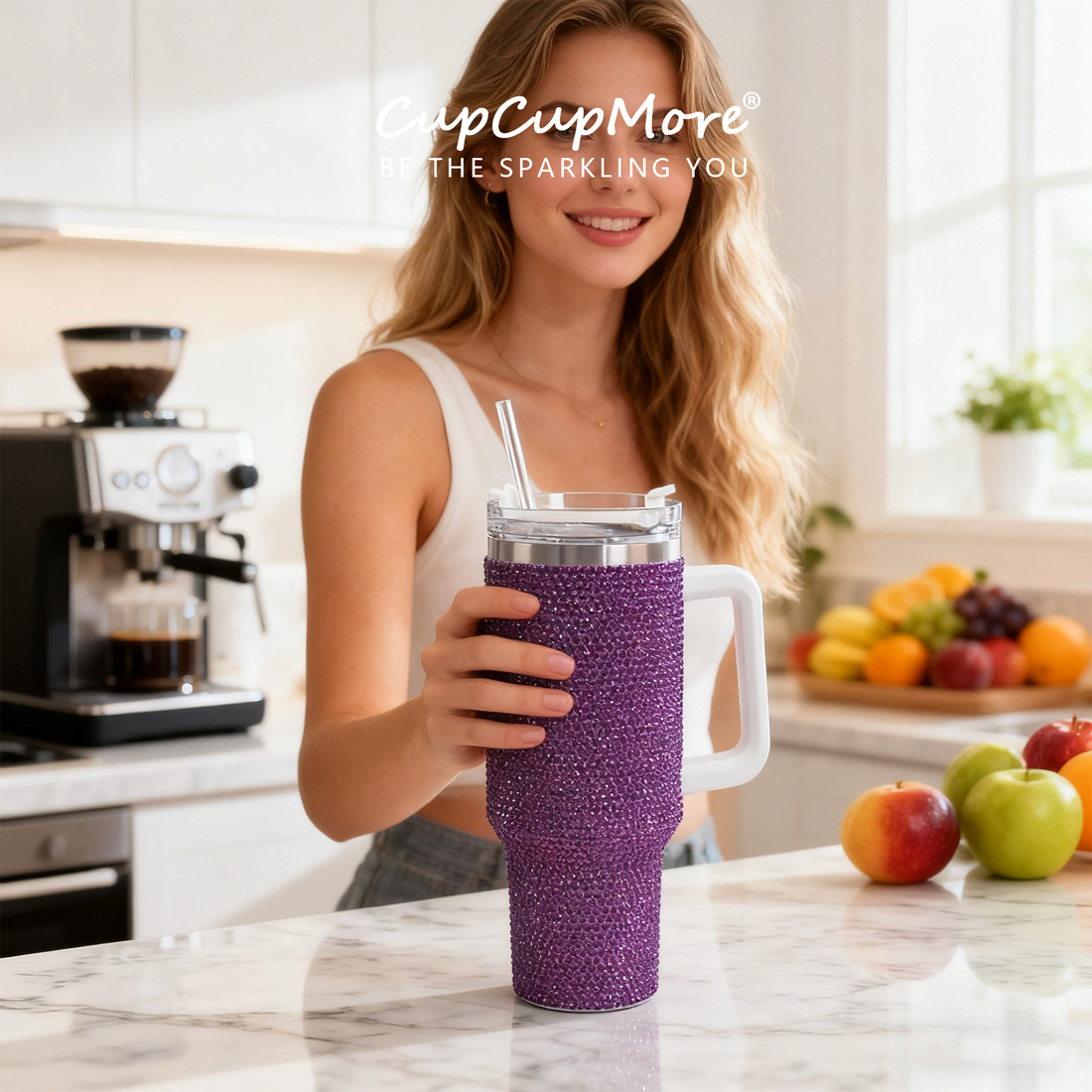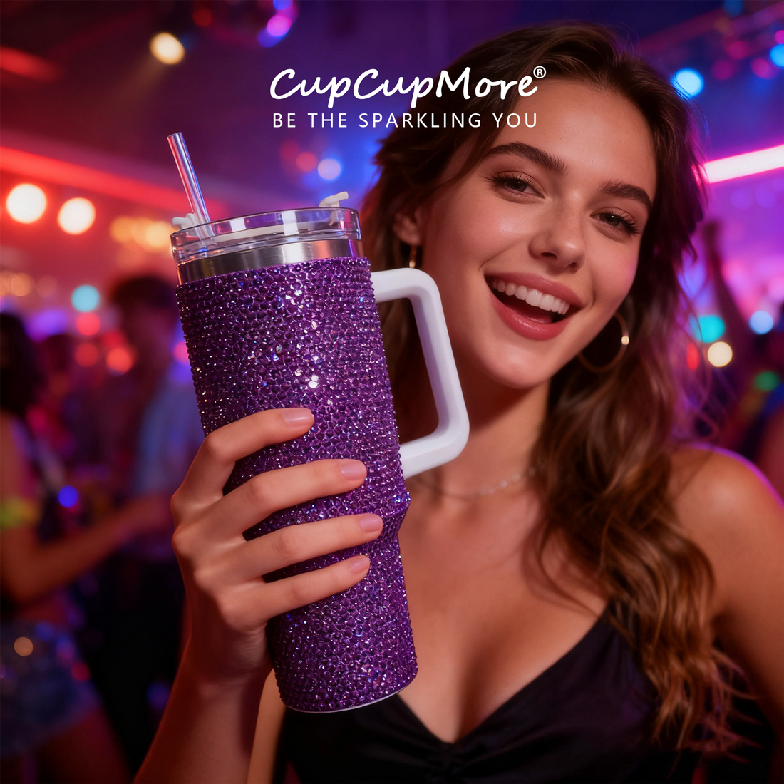 Cupcupmore 40 oz Grape Bling Rhinestone Stainless Steel Sippy Tumbler Glitter Vacuum Insulated Thermal Water Bottle with Straw & Lid &Handle,Sparkle Car Cup Holder,Keeps Cold 12 Hours Drinks,Coffee