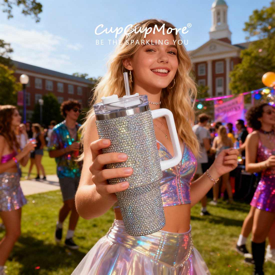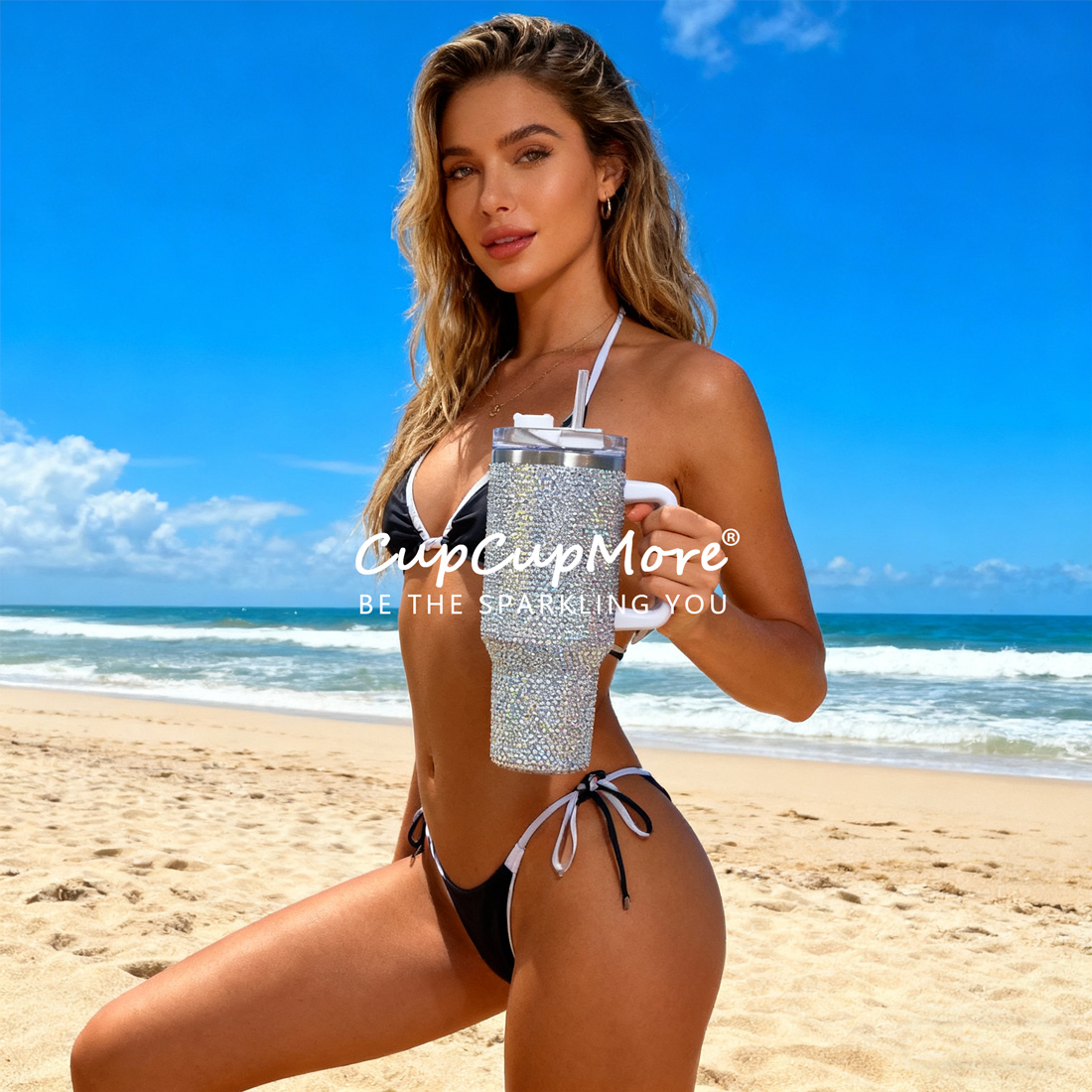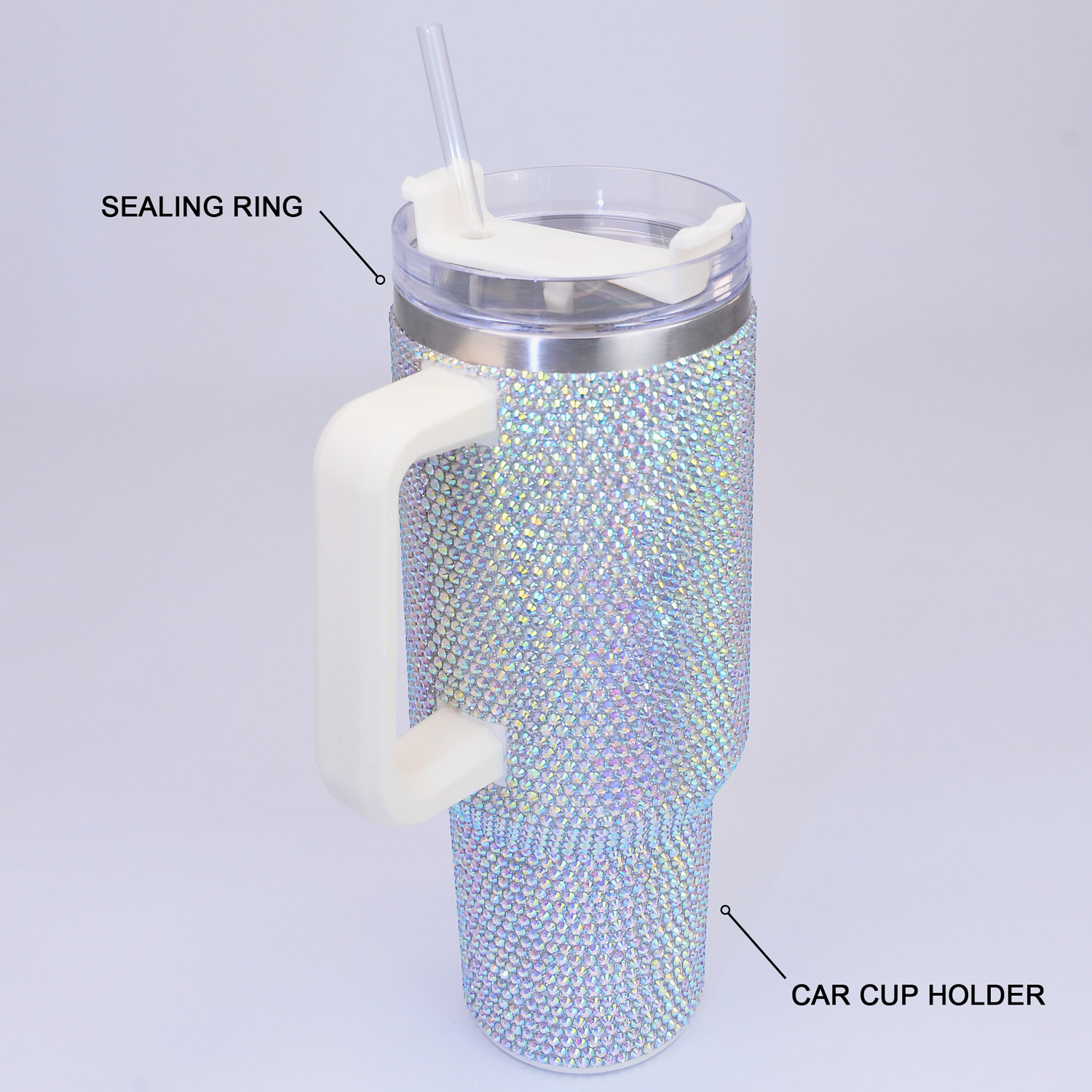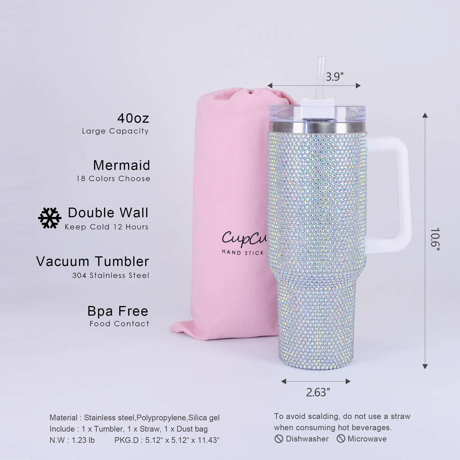Cupcupmore 40 oz Mermaid Bling Rhinestone Stainless Steel Sippy Tumbler Glitter Vacuum Insulated Thermal Water Bottle with Straw & Lid &Handle,Sparkle Car Cup Holder,Keeps Cold 12 Hours Drinks,Coffee