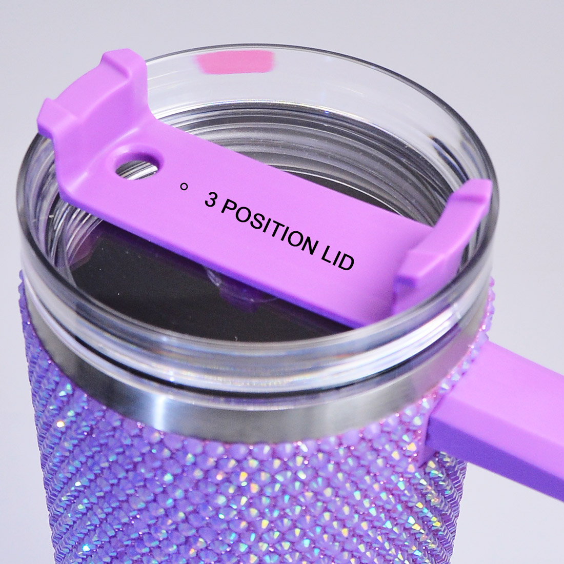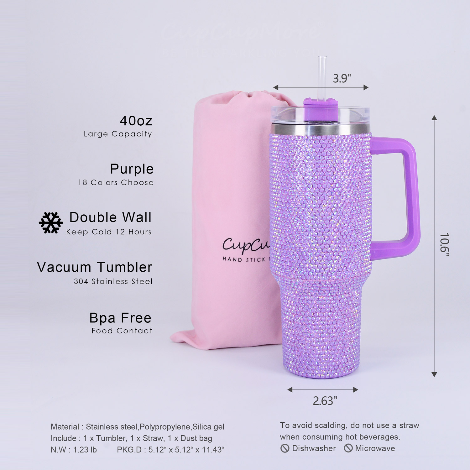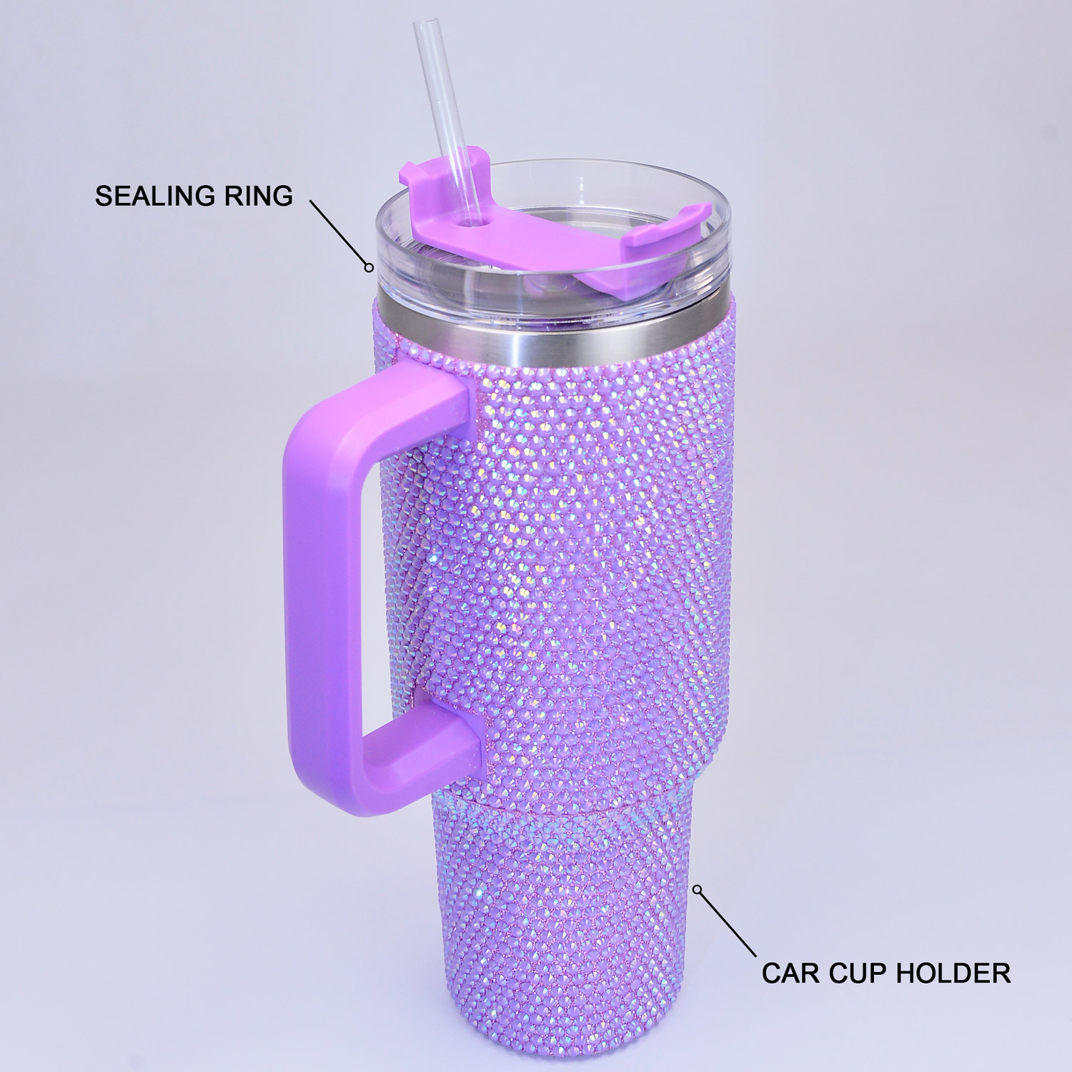 Cupcupmore 40 oz Purple Bling Rhinestone Stainless Steel Sippy Tumbler Glitter Vacuum Insulated Thermal Water Bottle with Straw & Lid &Handle,Sparkle Car Cup Holder,Keeps Cold 12 Hours Drinks,Coffee